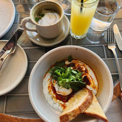 High-end hotel bar with ocean views, serving breakfast, brunch, lunch, and dinner, featuring creative cocktails and dishes like Korean fried chicken and fish tacos.