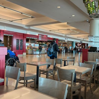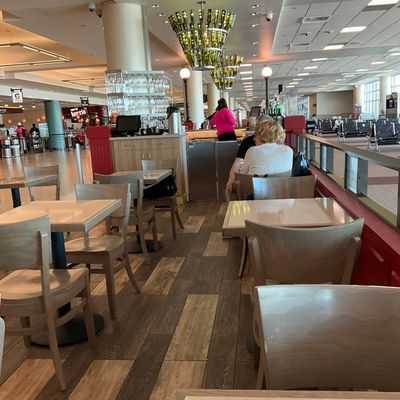 Airport wine bar restaurant with American contemporary cuisine, known for its gourmet sandwiches, salads, cheese plates, and wine selection.
