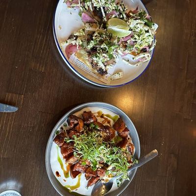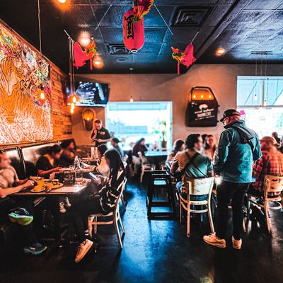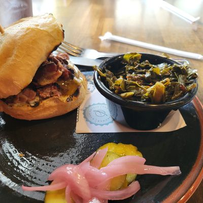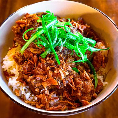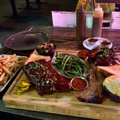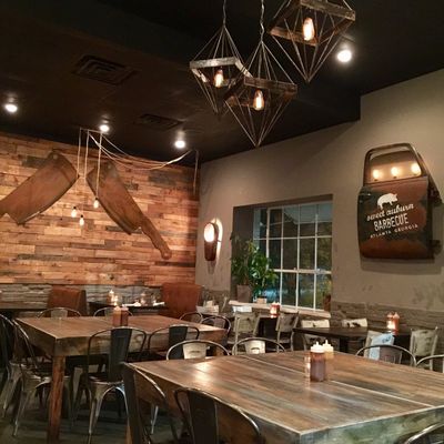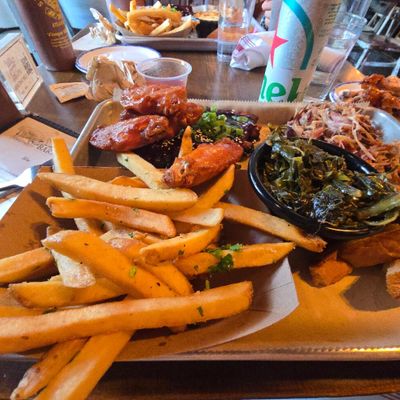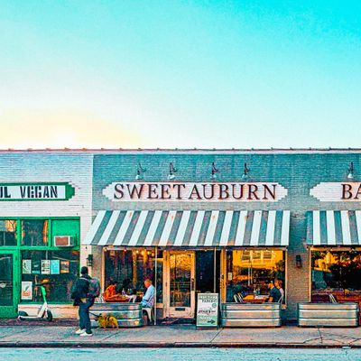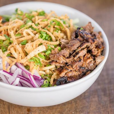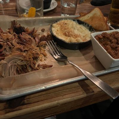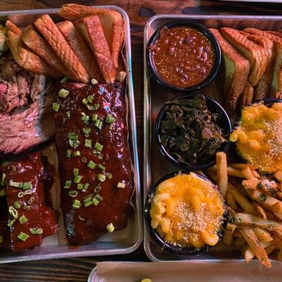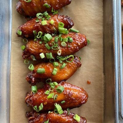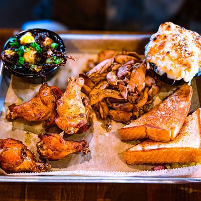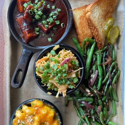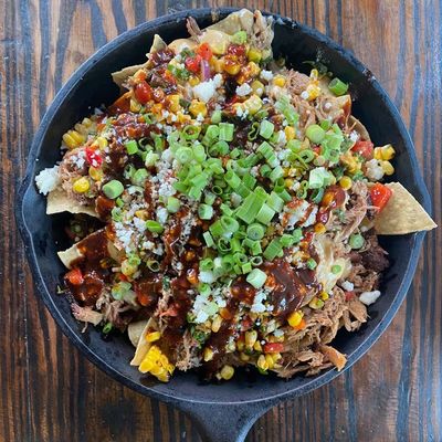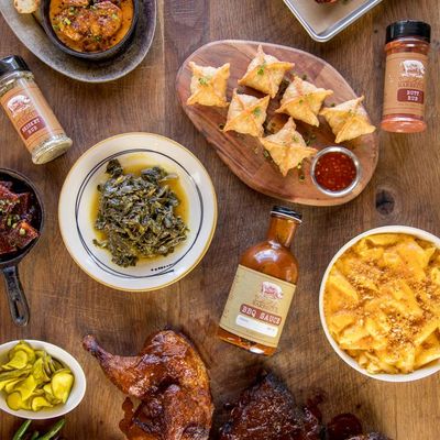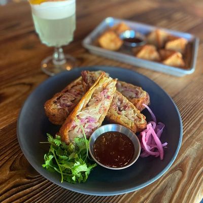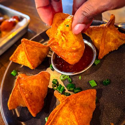 The wontons at Sweet Auburn BBQ are stuffed with zesty Tillamook cheddar pimento cheese and served with scallions and a sweet Thai chili dipping sauce.