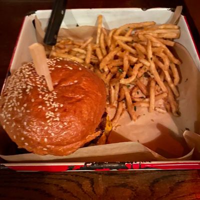 Order the burger, which is served juicy and perfectly cooked, especially when paired with the signature shoestring fries. The menu features high-quality American-style fare that complements the extensive drink list.food_potoo