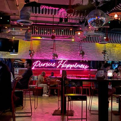 The space feels like the ultimate millennial hangout, complete with a dance floor and a high-energy soundtrack of 80s and 2000s hits. It transitions easily from a stylish lounge to a spirited spot for dancing on a Saturday night.ambiance_potoo
