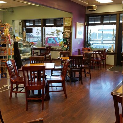 Charming waterfront cafe offering American breakfast, brunch, and lunch, with delicious pastries and coffee, known for friendly service but sometimes slow food preparation.