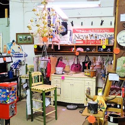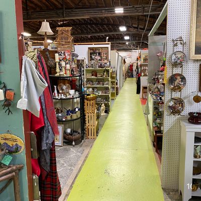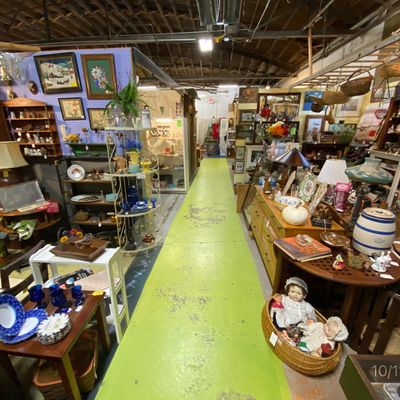 Large and well-organized antique mall featuring numerous vendor booths. The store offers a wide variety of items, including glassware, records, tools, books, and collectibles, with prices generally considered reasonable.