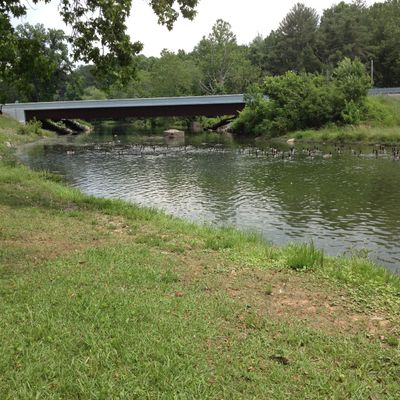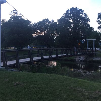 Recreational area featuring a unique, low-impact swinging bridge experience. The park offers paved walking trails through wooded areas alongside a creek, with opportunities for fishing and wildlife viewing.