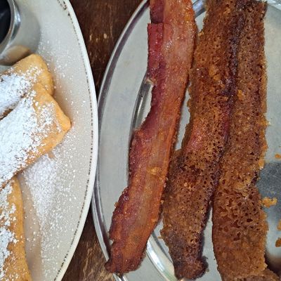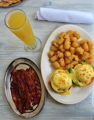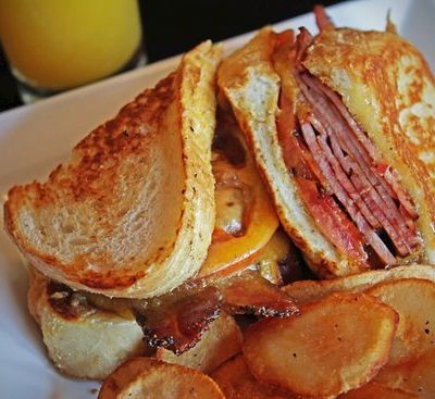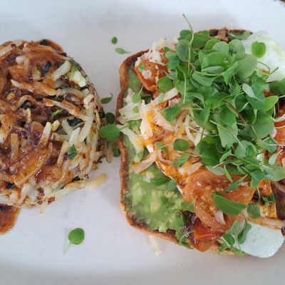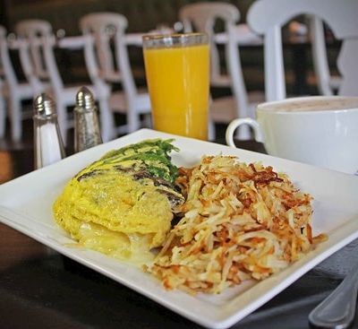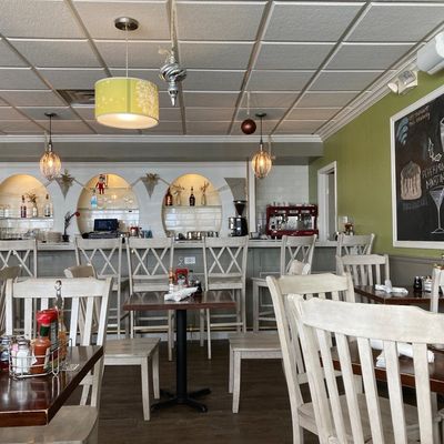 American cafe offering a variety of breakfast and lunch options. The atmosphere is described as homey and comfortable, with both indoor and sidewalk dining available.
