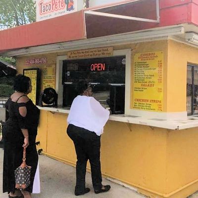 This is a functional takeout-style establishment centered around a walk-up window that provides a clear view of the food preparation area.ambiance_potoo