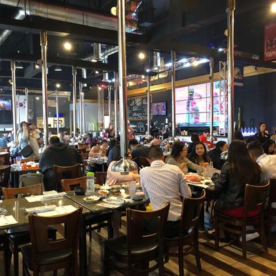 Korean BBQ restaurant with a lively atmosphere, offering various meats and banchan.