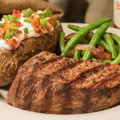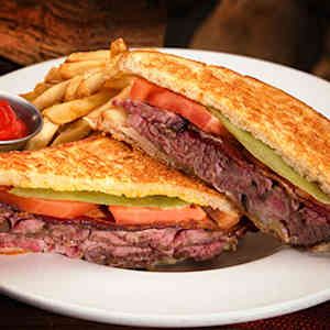 The restaurant centers its identity around 'Sierra Mountain Dining,' utilizing a traditional method of charbroiling beef over a cracklin' hardwood fire to distinguish its menu.story_potoo