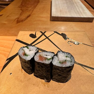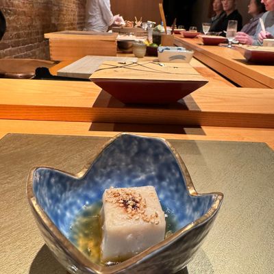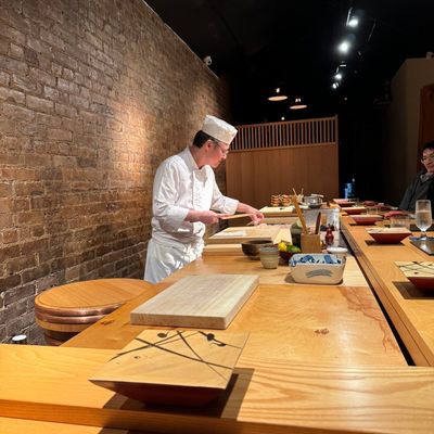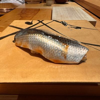 Seafood flown in from Tokyo's Toyosu fish market several times a week elevates this eight-seat counter's Edomae-style menu, occasionally interspersed with creative dishes like soba noodle maki.