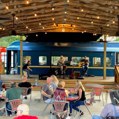 Unique establishment housed within antique train cars, offering a distinctive dining and drinking experience. It features a craft brewery with a wide selection of beers, complemented by a grill serving food.