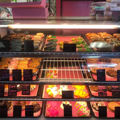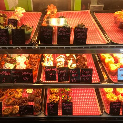 Bakery offering a wide variety of cupcakes, cookies, and cakes, known for large portions and unique fillings.