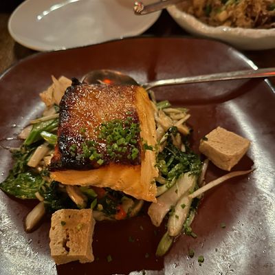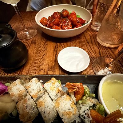 The menu features standout dishes like seafood tacos and pork lo mein. The sushi selection is particularly noteworthy for its quality and freshness.food_potoo