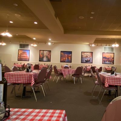 Large, family-friendly Italian restaurant in a somewhat unusual location, offering generous portions of pasta, seafood, and steak dishes, plus live piano music on weekends.
