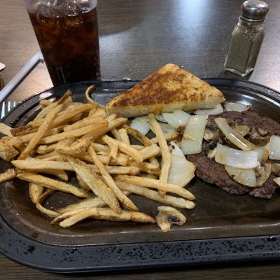Small-town American diner with a varied menu featuring comfort food like steak, pork chops, and burgers, known for generous portions and friendly service.