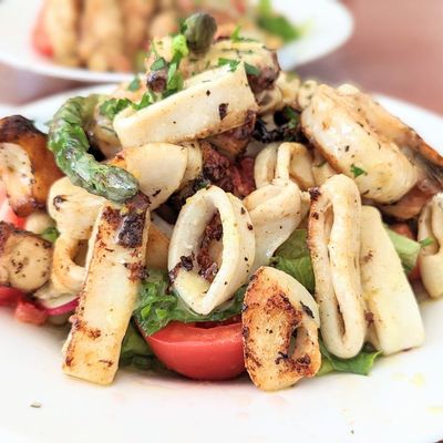 Greek restaurant with a lively atmosphere, offering grilled meats, seafood, and vegetarian options, plus belly dancing entertainment; it can be quite noisy.
