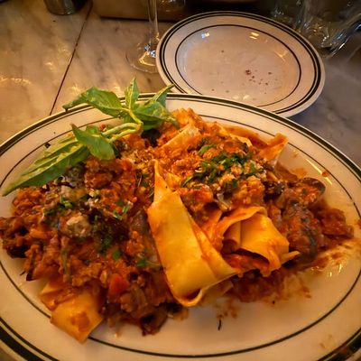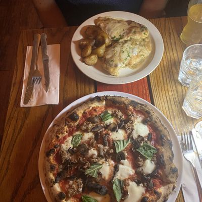 Rustic Italian restaurant with a historic feel, offering pizza and other dishes, known for its attentive service but sometimes cramped seating.