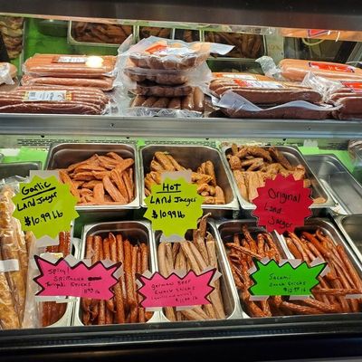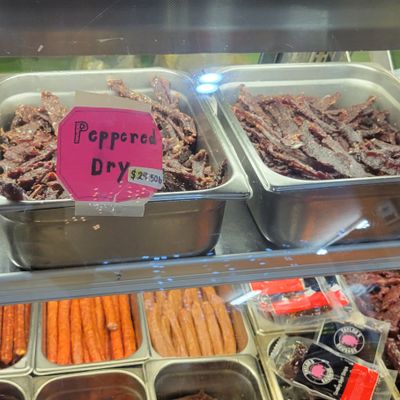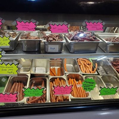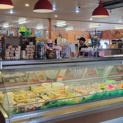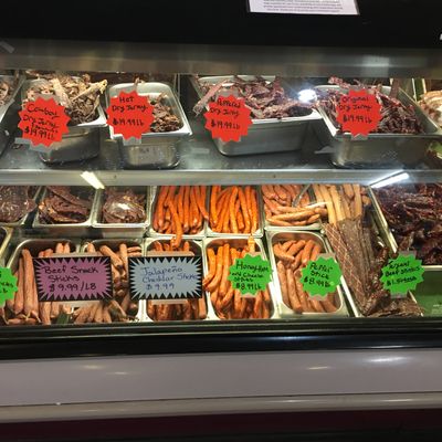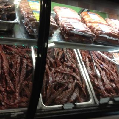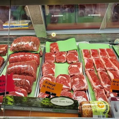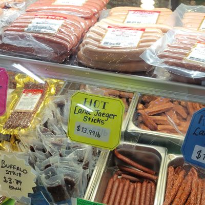 Casual, counter-service restaurant and country store offering American fare, including burgers and sausages, with a wide selection of meats and groceries.