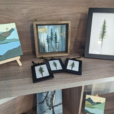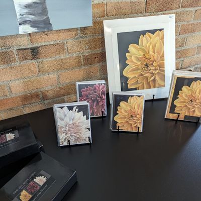 Charming gallery showcasing original and varied artwork. The collection features pieces ranging from oversized floral motifs to breathtaking landscapes, with options available in various sizes and price points.