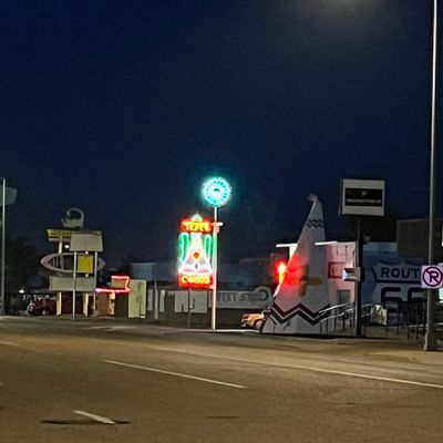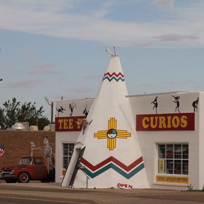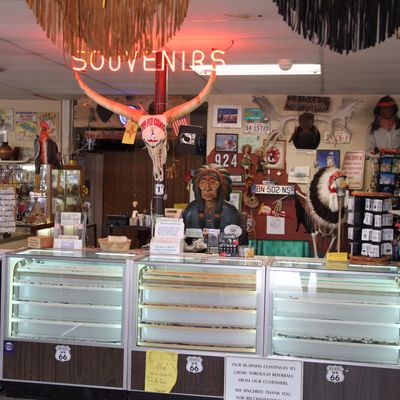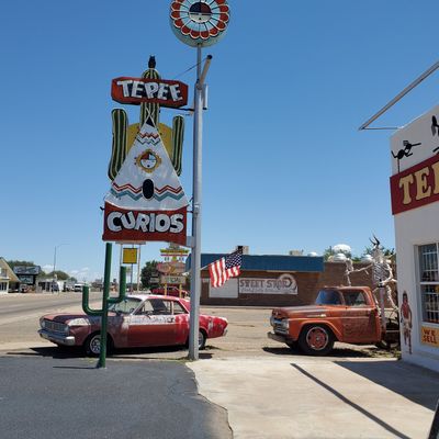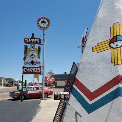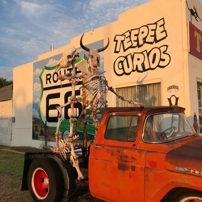 Classic Route 66 stop known for its iconic teepee-shaped entrance and vibrant murals. Inside, visitors will find a wide assortment of Route 66 and Southwestern souvenirs, local crafts, antiques, and memorabilia.
