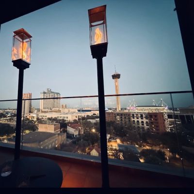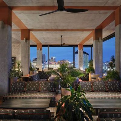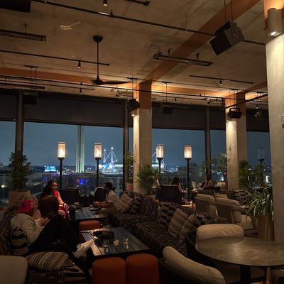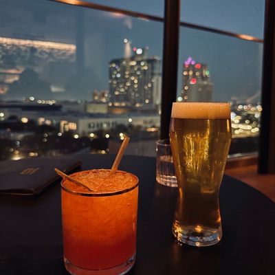 Luxurious rooftop bar with global cuisine, handcrafted cocktails, and stunning city views, offering a vibrant atmosphere.