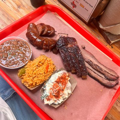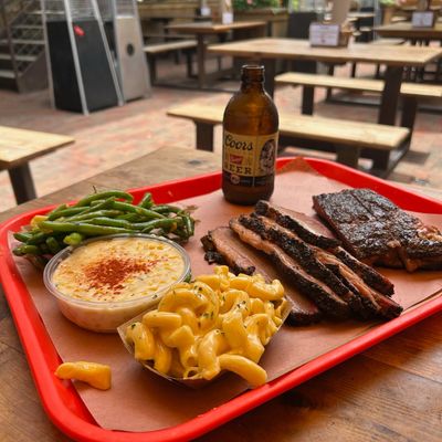 From its rooftop patio, Terry Black's offers smoky, filling barbecue with views of Deep Ellum and a giant floral mural.