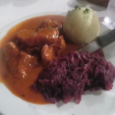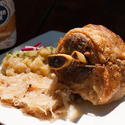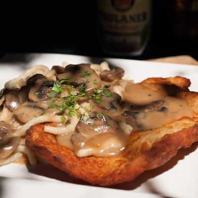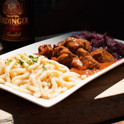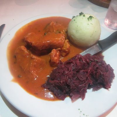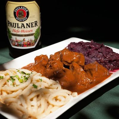 German restaurant with a traditional atmosphere, offering hearty portions of schnitzel, sausage, and other German fare.