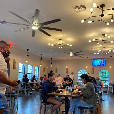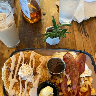 Casual, fast-casual brewpub with patio seating offering American fare, including breakfast, burgers, and tacos, plus coffee and beer.