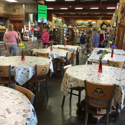 Chain BBQ restaurant offering American fare with inconsistent seasoning and tenderness; some find it pricey but convenient for travelers.