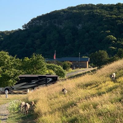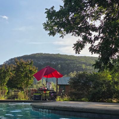 This resort offers a secluded getaway nestled within the scenic Texas Hill Country. It provides various accommodation options, including cabins and RV sites, set amidst a forested landscape.