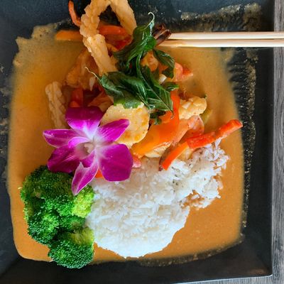 The menu features traditional Thai flavors, including standout items like mango sticky rice for dessert. Everything is prepared with fresh ingredients to ensure authentic taste.food_potoo