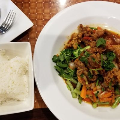 Casual, spacious Thai restaurant in Bel Air South offering a wide variety of dishes, including curries, noodles, and appetizers, known for its flavorful food and generally good service.