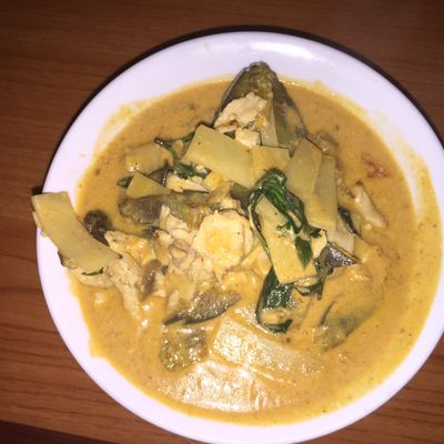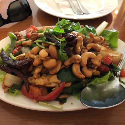 Casual, family-friendly Thai restaurant in a strip mall, known for its generous portions, flavorful curries, and spring rolls (though some find them bland), offering takeout and dine-in options.