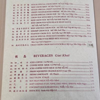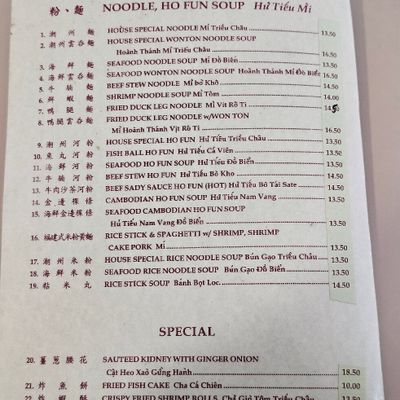Bustling neighborhood noodle house serving delicious Vietnamese cuisine, known for its House Special Ho Fun with crispy pork skin, and quick service.