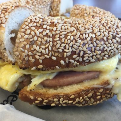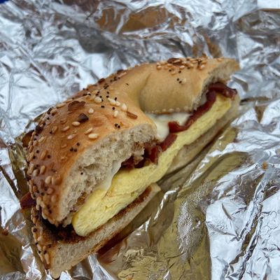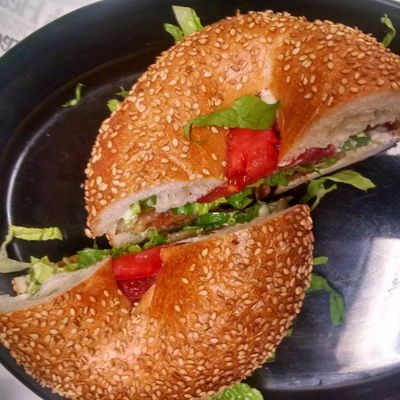 The bagels are the star here, especially when paired with the green olive cream cheese for a savory touch. For a sweeter start, try visiting early to snag the best selection of sweet bagels and veggie cream cheese options.food_potoo