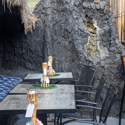 The atmosphere is vibrant and steeped in tropical charm, making it feel like a getaway. It serves as an energetic neighborhood hub where the Tiki-themed decor sets a lively, festive tone.ambiance_potoo