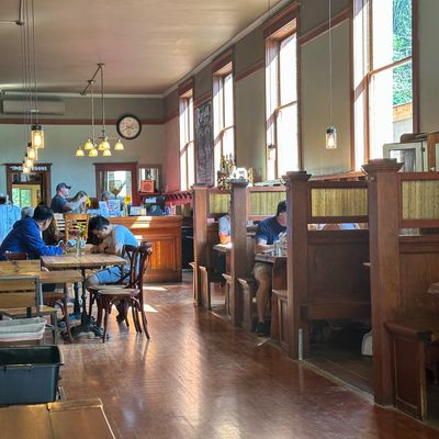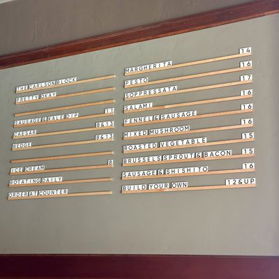 Small, popular restaurant in a historic building serving gourmet, wood-fired sourdough pizzas with unique toppings and homemade ice cream.