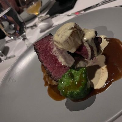 The below-ground dining room, designed to resemble a cave by a Disneyland set creator, offers excellent food, wine, and service amid upscale ambiance.
