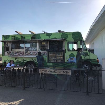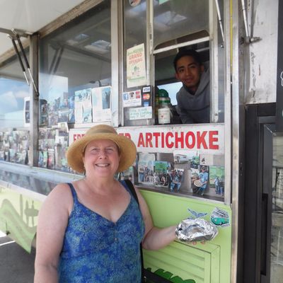 Fast-food restaurant known for its fried artichokes, tacos, and wraps, offering outdoor seating and located near Pezzini Farms.