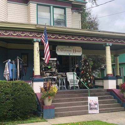 Unique store housed in a Victorian building, offering an extensive selection of Christmas decorations and ornaments. Visitors can explore numerous themed rooms filled with items for gifting and collecting, including Department 56 villages and nostalgic pieces. long_description