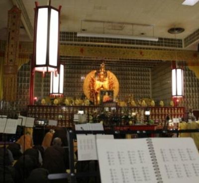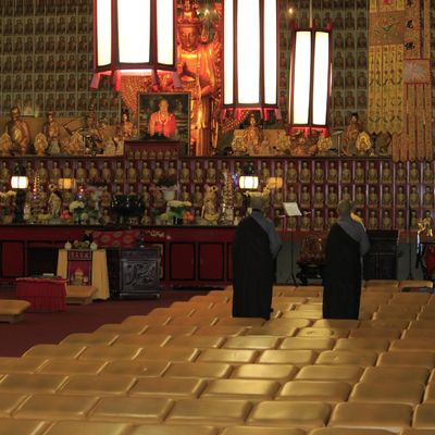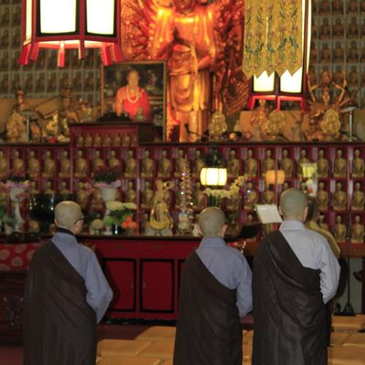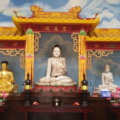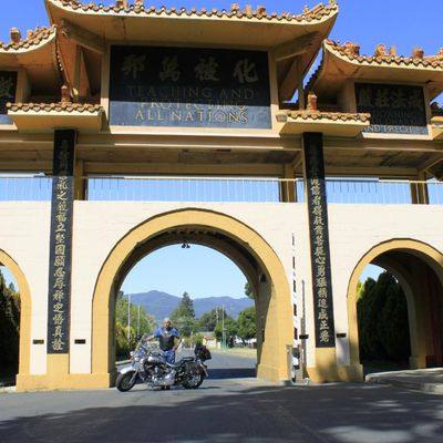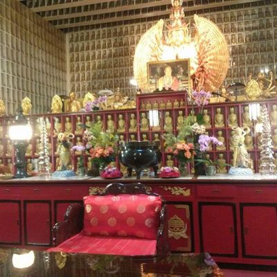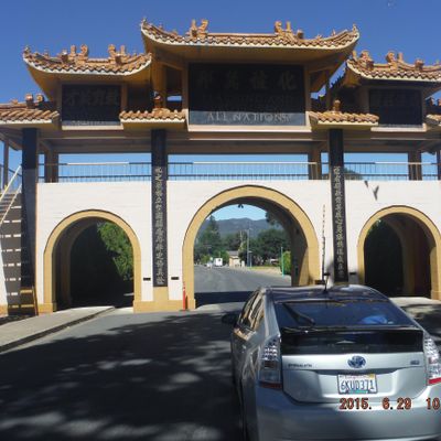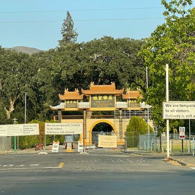 Serene Buddhist monastery and spiritual center. It features a peaceful campus with temples, a bookstore, and grounds often visited by peacocks.