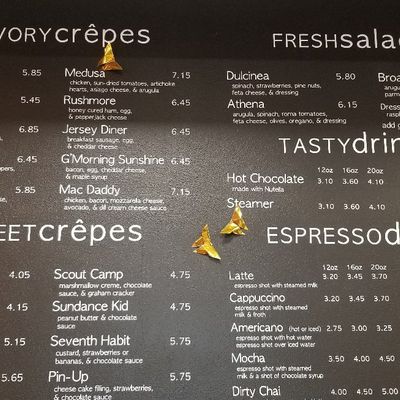 Cafe offering sweet and savory crepes, along with coffee and other drinks, in a cozy, relaxed atmosphere with sometimes inconsistent service.