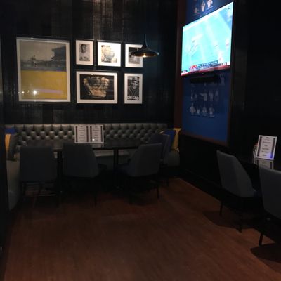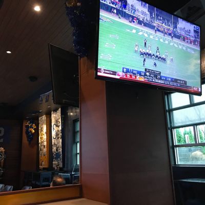 Casino sports bar with American pub fare, numerous TVs, and outdoor seating with fire pits.