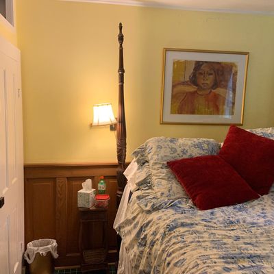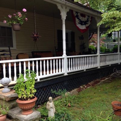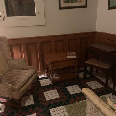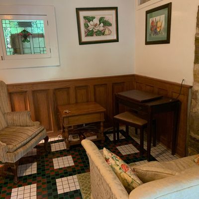 Historic bed and breakfast set within a charming, wooded enclave. It offers a cozy atmosphere with antique furnishings and a wraparound porch, providing a peaceful retreat.