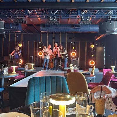 Modern dining and entertainment club with a varied menu featuring Southern-influenced dishes and drinks, known for its live music and sometimes inconsistent service.