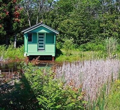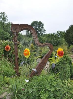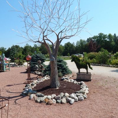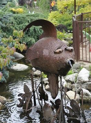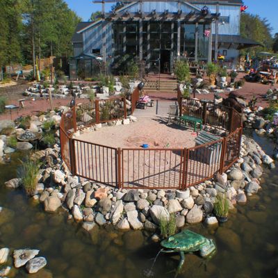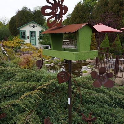 Unique destination featuring an art gallery and gift shop with eclectic items. It boasts a beautifully landscaped garden with whimsical sculptures, a pond, and winding streams, offering a peaceful outdoor experience.