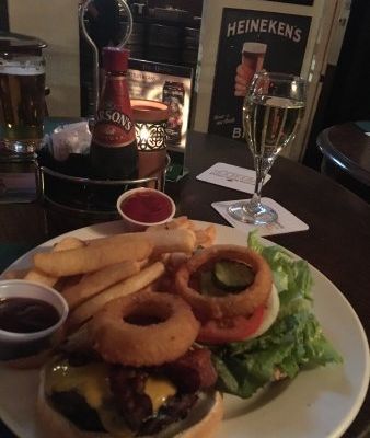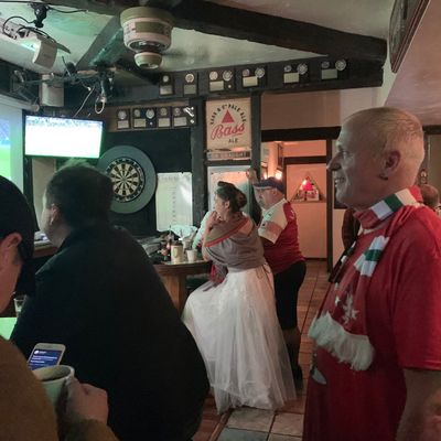 Reviewers frequently highlight the authentic atmosphere for watching English Premier League matches on the large projector screen. The selection of imported beers, particularly Guinness and Iron Maiden, is a major draw alongside the traditional English dishes.reviews_potoo