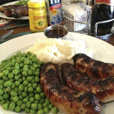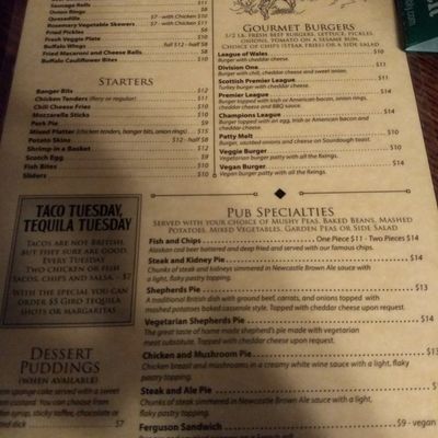 Order classic British comfort food like Shepherd's Pie, Bangers, or Fish and Chips. Pair your meal with a pint of Guinness or one of the many imported drafts, including Iron Maiden beer.food_potoo