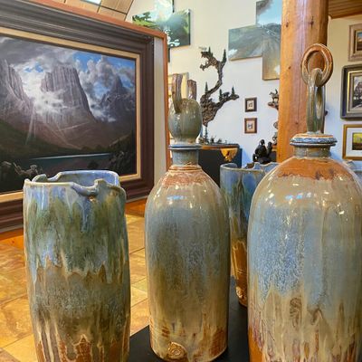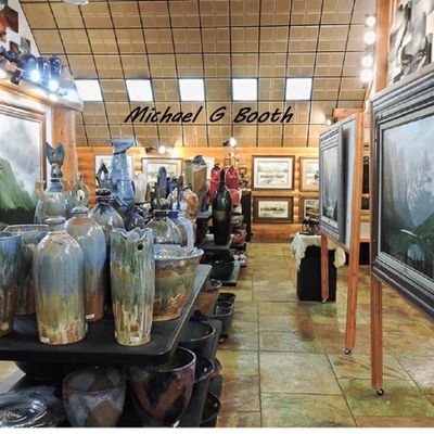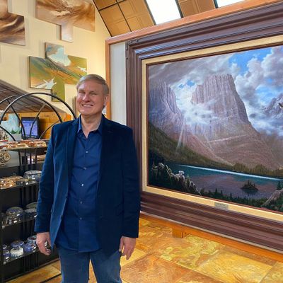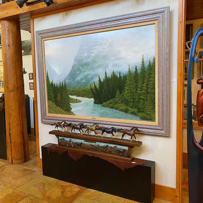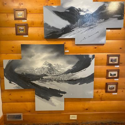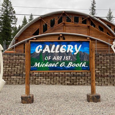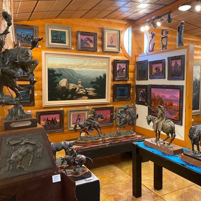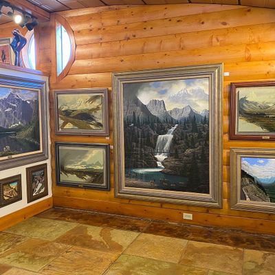Stunning log building showcasing a variety of artistic styles and mediums, including paintings, bronze sculptures, and ceramics. The artist himself is often present, offering insights into his unique and breathtaking work.