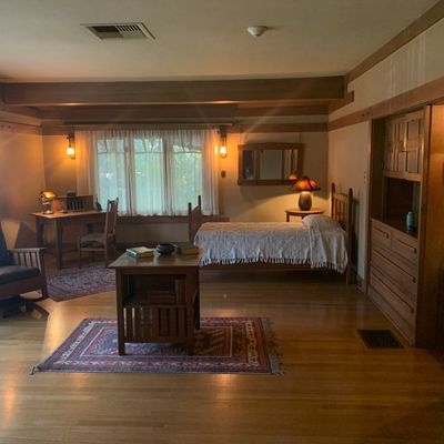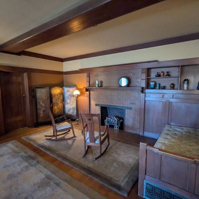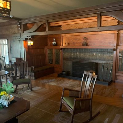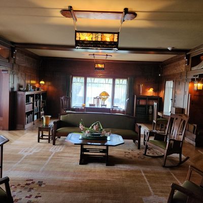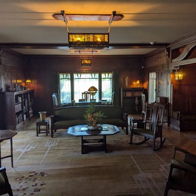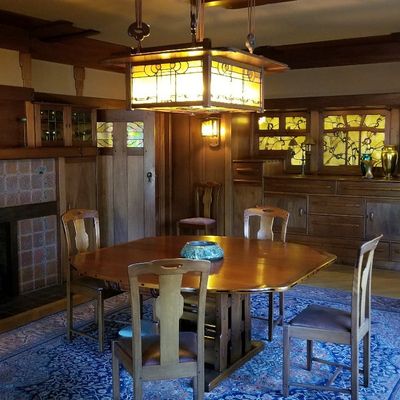 Renowned architectural masterpiece showcasing the early 20th-century American Arts and Crafts Movement. This historic home features exquisite woodwork, stained glass, and original furnishings, offering a glimpse into the design philosophy of simplicity and natural elements.