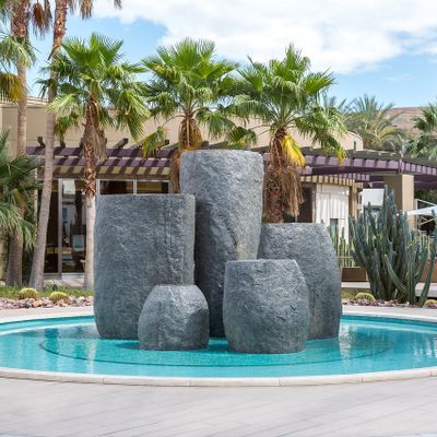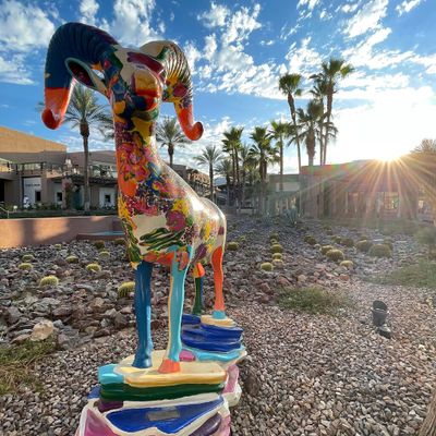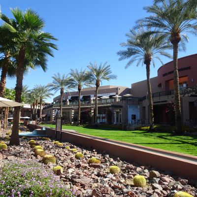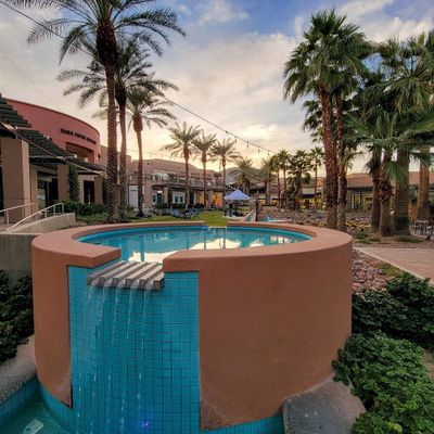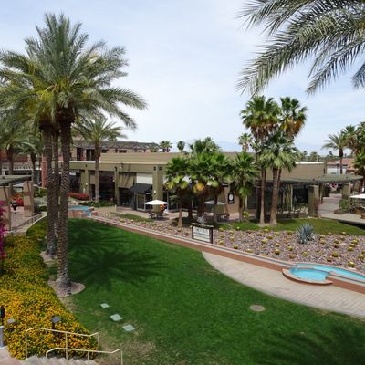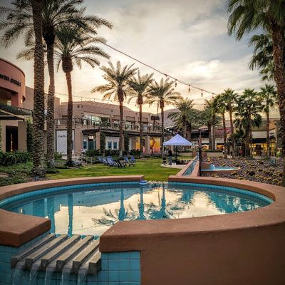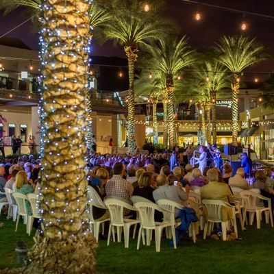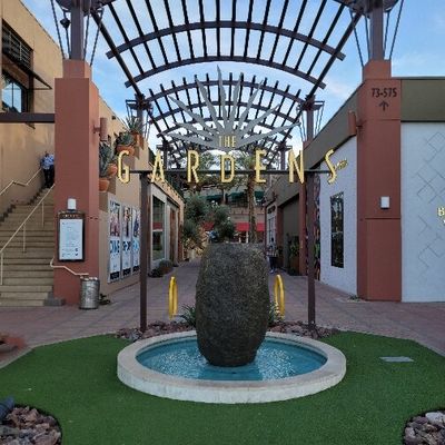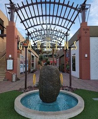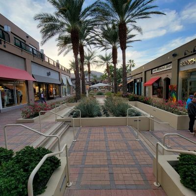 Charming outdoor shopping and dining destination. It features manicured gardens, sculptures, and walkways, creating a relaxing atmosphere for visitors.